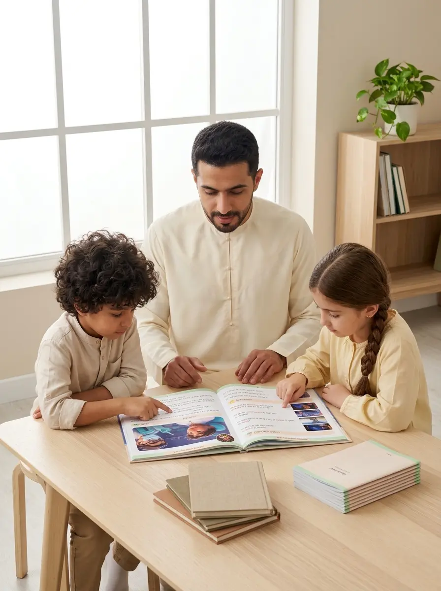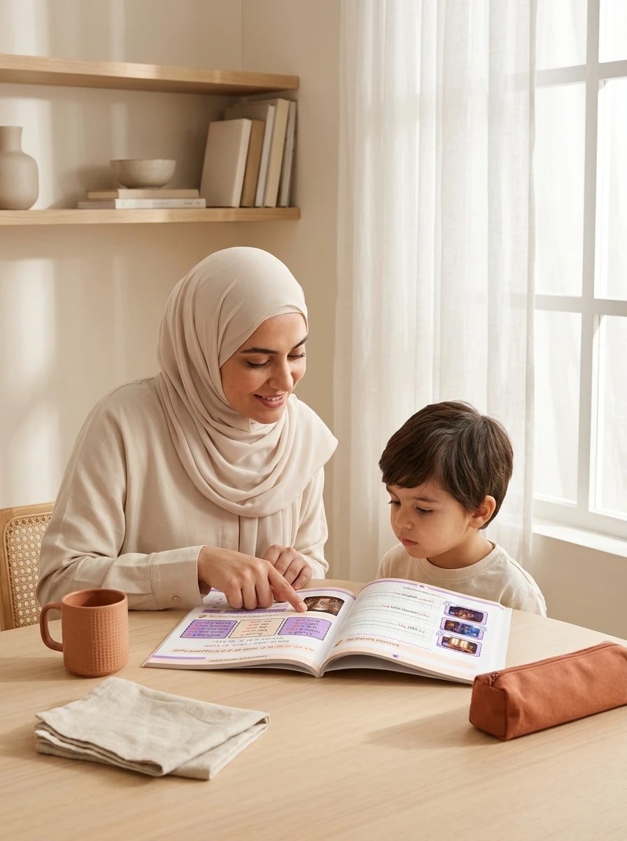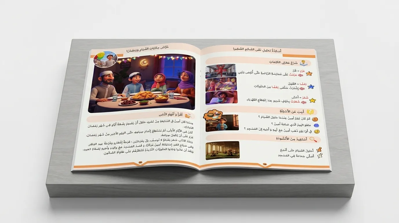 Le Livre 1 suit une logique de prĆ©cision : aprĆØs avoir consolidĆ© l’orthographe, l’élĆØve entre dans la grammaire active. Chaque leƧon est conƧue pour que l'enfant puisse immĆ©diatement rĆ©utiliser les structures apprises dans des thĆØmes familiers comme la nature, la famille ou la vie Ć  la mosquĆ©e. Ce que l’élĆØve maĆ®trise en fin de Niveau 4 ƀ l'issue de cette annĆ©e, l'Ć©lĆØve est capable de construire des phrases complexes au passĆ©, de rĆ©diger un court paragraphe structurĆ© et de comprendre le sens global d'un texte narratif. Il maĆ®trise les rĆØgles de base de la grammaire et possĆØde une connaissance prĆ©cise des Ć©tapes de la priĆØre, lui offrant une autonomie solide pour aborder les niveaux supĆ©rieurs d'analyse linguistique. Le Livre 2 Ć©lĆØve le niveau d’exigence avec des textes narratifs et descriptifs plus longs. L’élĆØve s'initie Ć  la distinction entre phrase nominale et phrase verbale, tout en dĆ©veloppant son autonomie de recherche grĆ¢ce Ć  l'utilisation systĆ©matique des synonymes et des antonymes. C'est le livre de la maturitĆ© linguistique. 2. DĆ©velopper l'analyse de texte