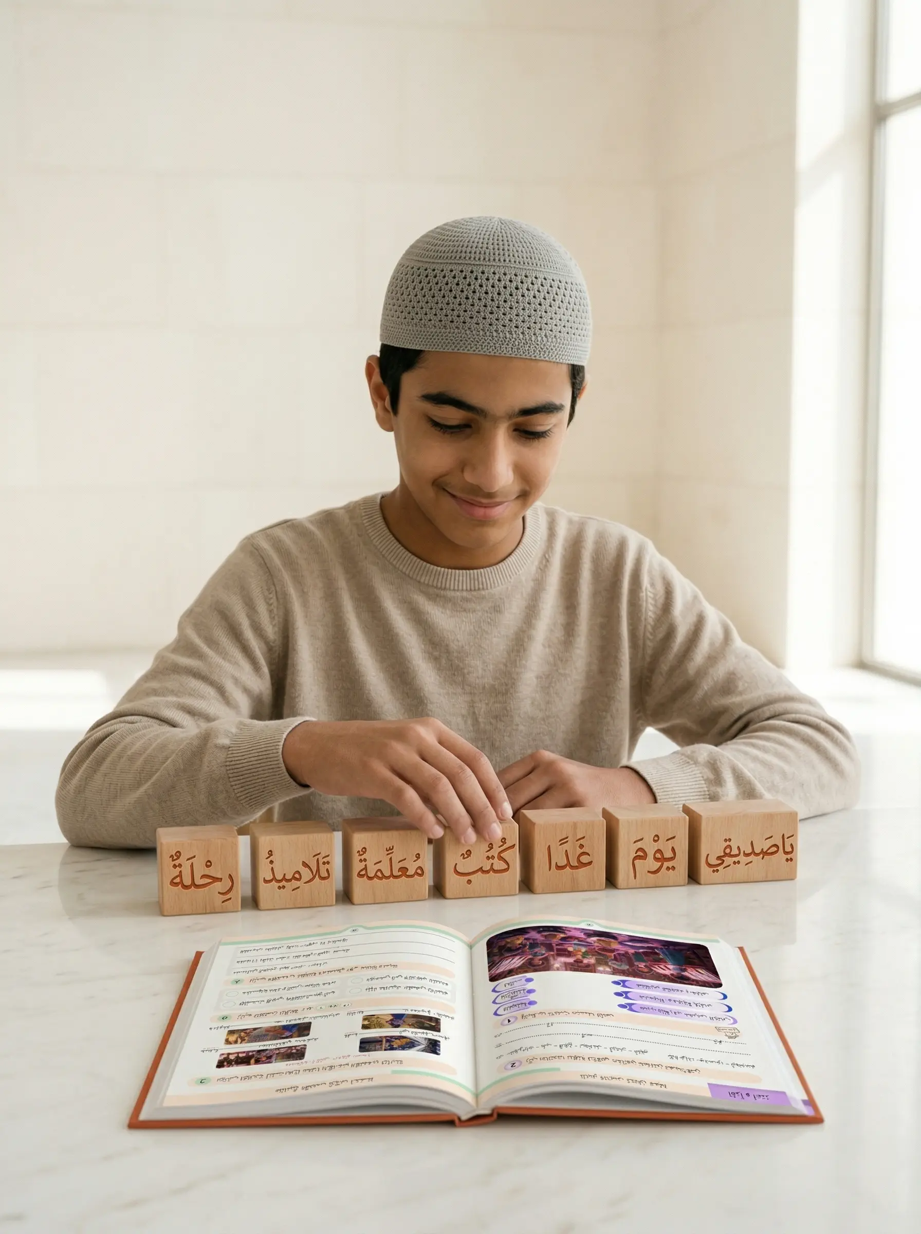 Ce niveau s'adresse aux Ć©lĆØves ayant dĆ©jĆ  acquis une lecture fluide et souhaitant s’initier aux mĆ©canismes de la langue : construction de phrases, emploi des temps et enrichissement du vocabulaire. Il est idĆ©al pour les classes de mosquĆ©es cherchant Ć  professionnaliser leur enseignement avec un programme clĆ© en main qui assure la transition entre le dĆ©chiffrage et la comprĆ©hension rĆ©elle des textes. Au-delĆ  de la grammaire, ce kit pĆ©dagogique est une invitation Ć  mieux comprendre les textes religieux. En maĆ®trisant les verbes d'action et la structure des phrases, l'Ć©lĆØve accĆØde Ć  un niveau de comprĆ©hension qui donne tout son sens Ć  sa pratique. Chaque chapitre est une pierre supplĆ©mentaire Ć  l'Ć©difice de son identitĆ© musulmane, transformant l'effort d'apprentissage en un acte d'adoration conscient. ConƧu pour les dĆ©fis du terrain, ce Niveau 4 offre une structure sĆ©curisante pour les enseignants, qu'ils soient professionnels ou bĆ©nĆ©voles. La clartĆ© des objectifs pĆ©dagogiques et la progressivitĆ© des exercices permettent de maintenir une homogĆ©nĆ©itĆ© de niveau dans la classe. En adoptant ce kit, votre Ć©tablissement garantit aux parents une progression visible : l'enfant ne fait plus que "lire l'arabe", il commence Ć  le "parler et l'Ć©crire avec logique".